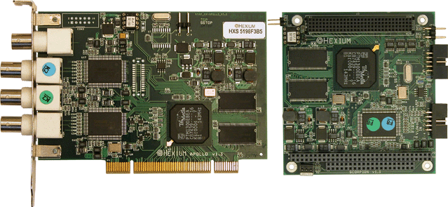 HEXIUM HV-APOLLO and HV-SCORPION cards provide sufficient SDRAM memory needed for image processing tasks. This way the capacity of the PCI bus of the computer is less loaded, since only the result of the image processing is transferred through the bus and not the full image.